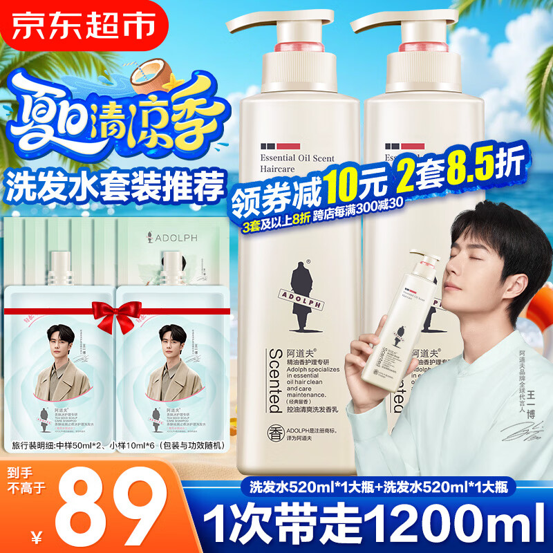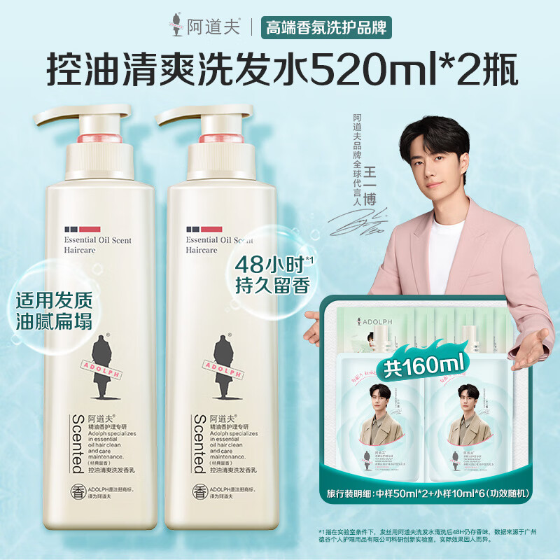 阿道夫明星洗护套装限时优惠!原价170元,领券立减40元,到手仅需130元!控油去屑、蓬松清爽,超50万用户好评推荐,速抢!