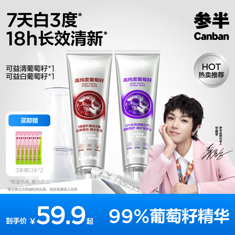 告别黄牙!参半葡萄籽美白牙膏,限时优惠仅需79.9元,99%好评如潮!