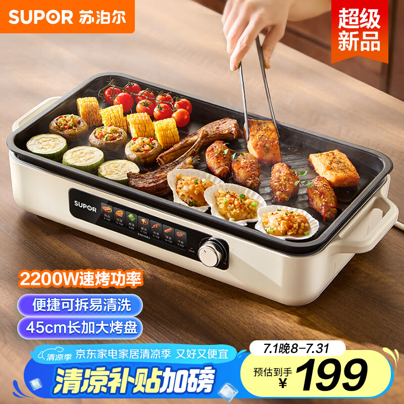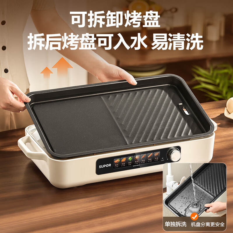 苏泊尔多功能烤肉锅电烤盘,集烤肉、烤串、火锅于一体,不沾易清洗,家用聚餐神器。现在仅需248元,享受国家补贴,好评率96%!京东自营,7天无理由退货,品质有保障。