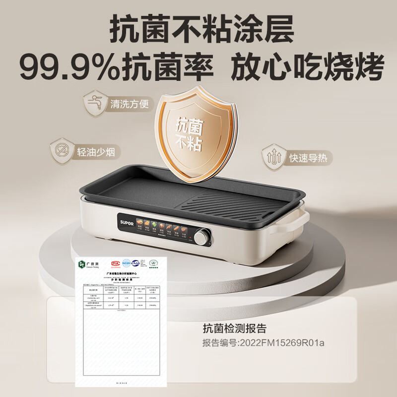 家庭聚餐神器!苏泊尔多功能电烤盘,烤肉火锅烤串一锅搞定,到手价仅需248元!
