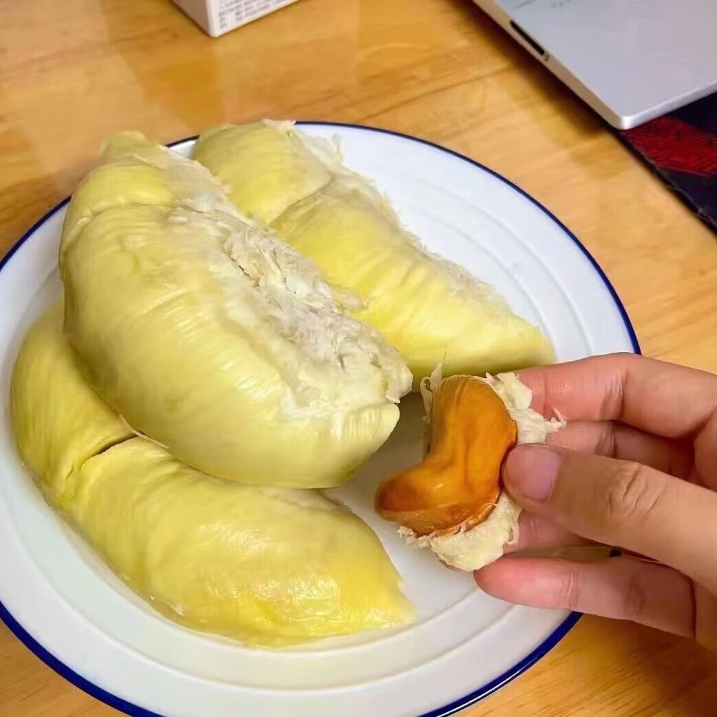 - 新鲜整果带壳,原汁原味: 收到的是带壳的整个新鲜榴莲,最大程度地保留了榴莲的原始风味和营养。自己开壳,更能体验到拆盲盒般的惊喜和乐趣!