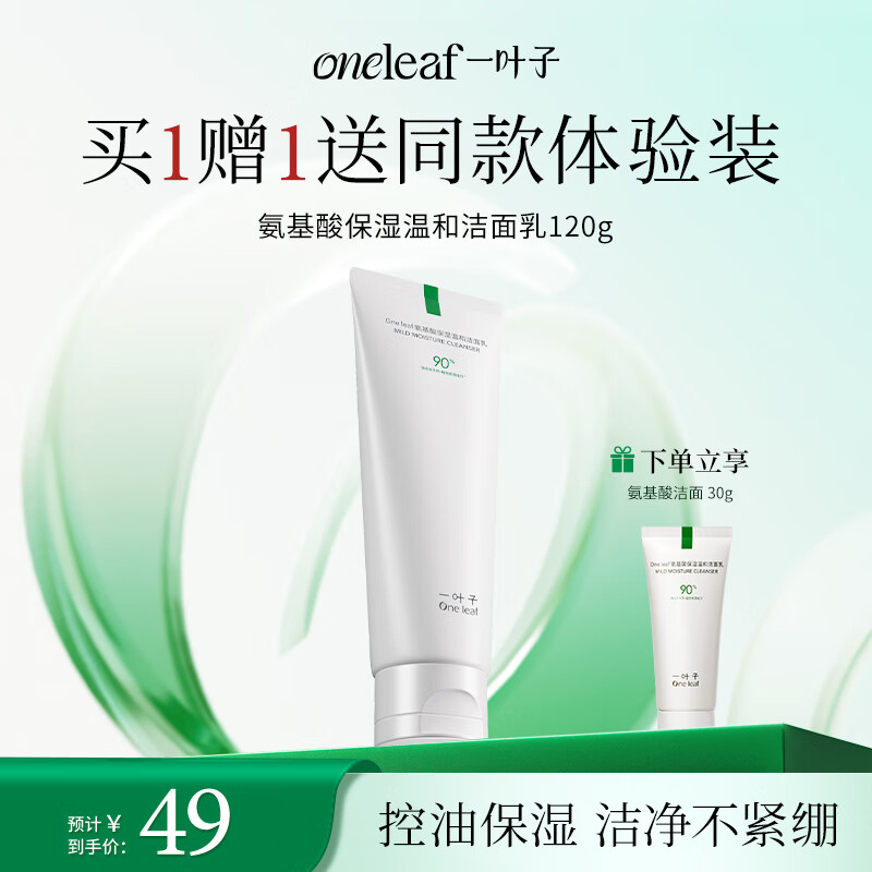 还在为洗脸后的紧绷感、干燥不适而烦恼吗?今天,我要向大家隆重推荐一款口碑爆棚的洁面产品——一叶子氨基酸洁面120g!它不仅能温和清洁,更能有效控油保湿,洗后肌肤水润不紧绷,现在购买仅需49元,性价比超高!