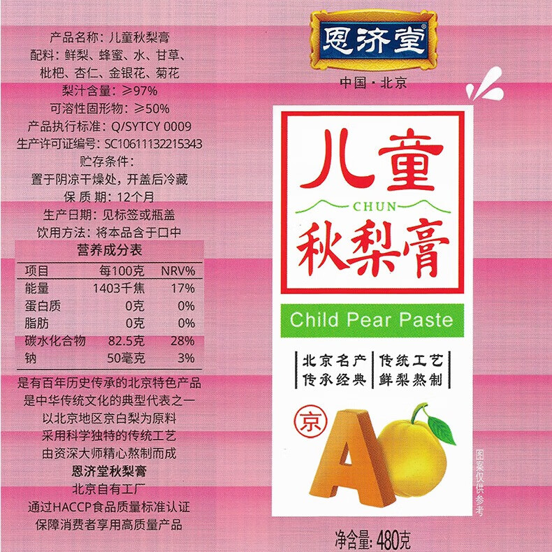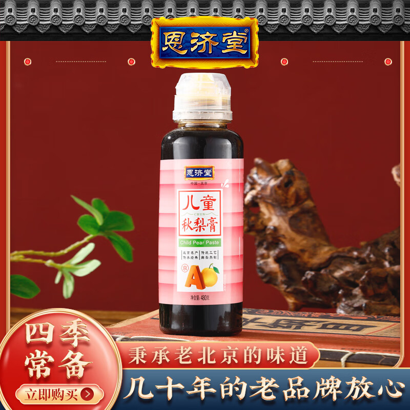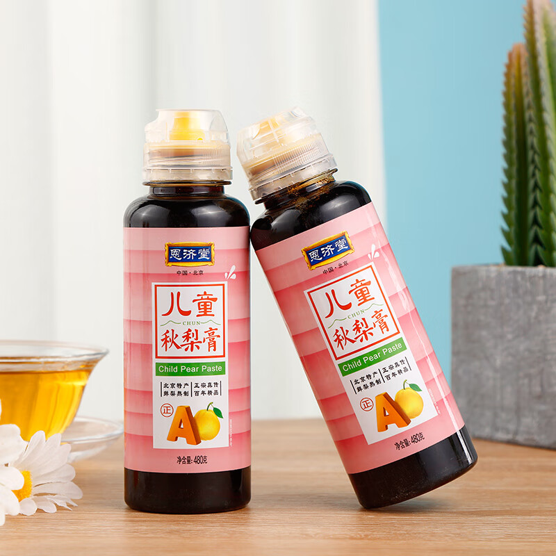 - 专为儿童宝宝定制,温和滋润: 考虑到儿童的特殊体质,恩济堂秋梨膏配方温和,口感醇厚,易于宝宝接受。无论是日常滋补,还是换季时节,都是宝爸宝妈们的安心之选。