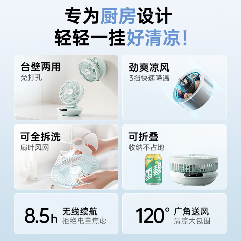 炎炎夏日,你是否还在为厨房的油烟闷热、宿舍的狭小空间、书房的空气不流通而烦恼?别担心,今天我为大家带来一款夏日清凉神器——小熊(Bear)壁挂风扇风宝厨房风扇DFS-H08R1!它不仅功能强大,设计贴心,现在更有超值优惠,到手价仅需174元!