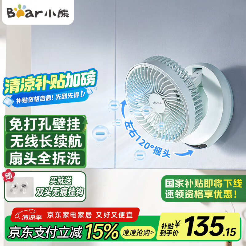 这款小熊壁挂风扇原价184元,现在参与活动,可领取10元优惠券,实际到手价仅需174元!更惊喜的是,它还支持购新国补最高15%,让您在享受清凉的同时,还能获得额外的补贴优惠,简直是物超所值!