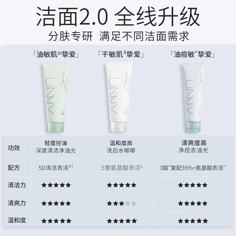 还在为春夏出油、毛孔粗大、T区泛油光而烦恼吗?别担心,今天我作为你的产品导购专家,要为你隆重推荐一款专为混油皮和学生党量身打造的宝藏洁面——悠宜(unny club)氨基酸洁面乳!这款洁面不仅口碑爆棚,更有超高性价比,现在仅需49元就能带回家,绝对是你的不二之选!
