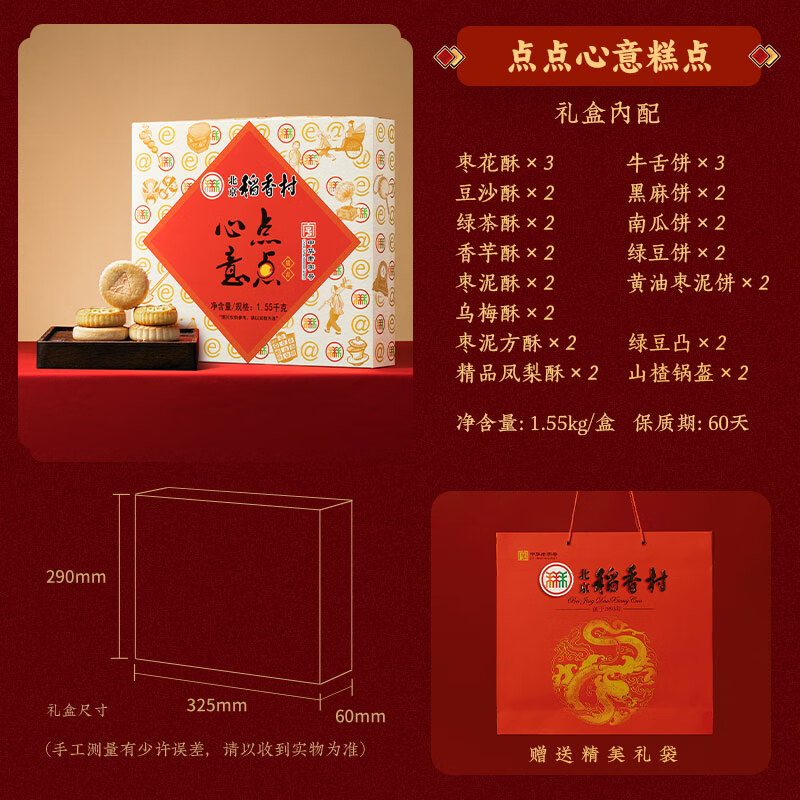 这款礼盒净含量高达1550g,足足超过3斤!内含多种经典糕点,满足不同口味需求。无论是家庭聚会分享,还是作为伴手礼,这份沉甸甸的心意都能让人感受到您的诚意。