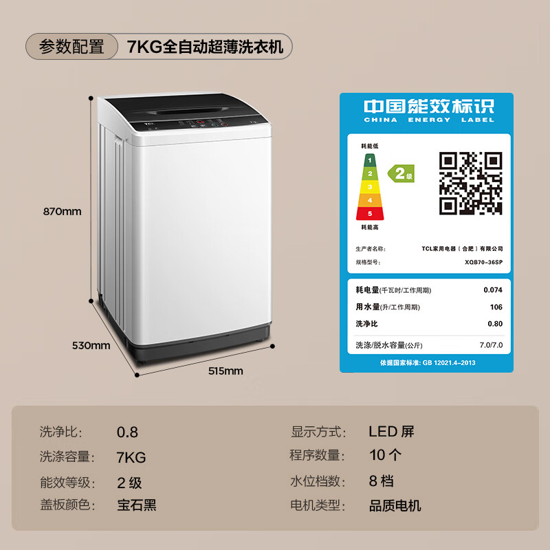 综合来看,TCL 7KG全自动波轮洗衣机凭借其强大的功能、便捷的操作以及超高的性价比,无疑是您居家或租房生活的理想选择。现在正值优惠期,仅需989元就能把它带回家,还在等什么?