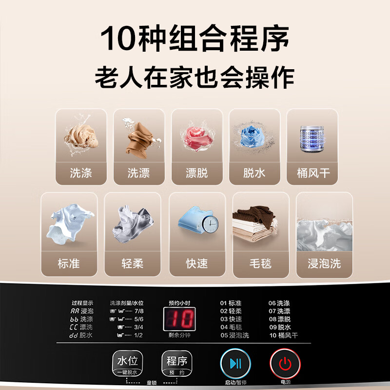 1. 一键脱水,快速干衣: 洗涤结束后,一键即可完成强力脱水,大大缩短衣物晾晒时间,尤其是在潮湿天气或急需穿衣时,这个功能简直太实用了!