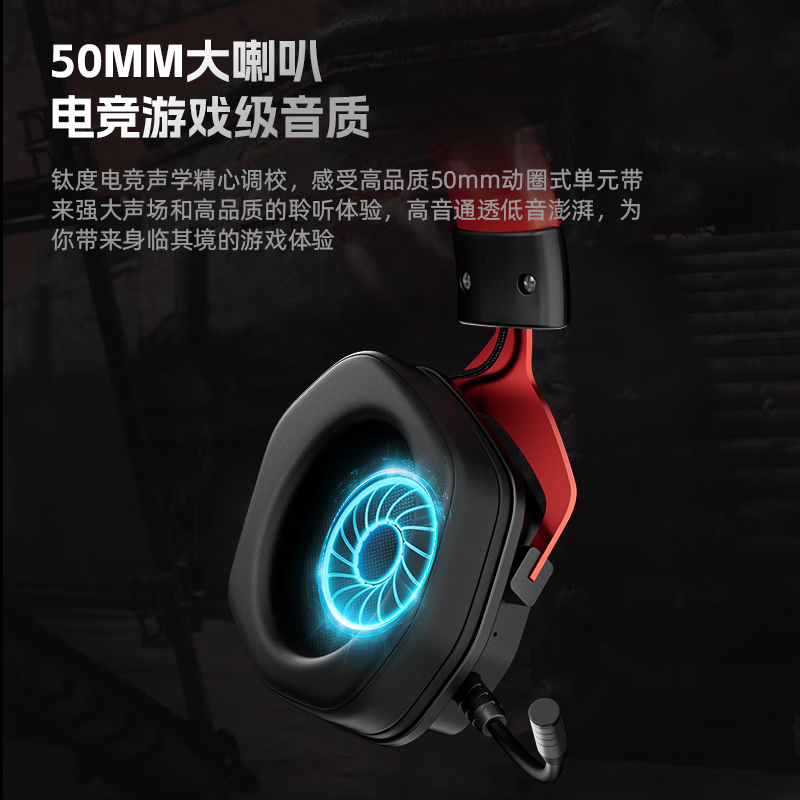 - 黑红电竞风设计:炫酷黑红色外观,搭配人体工学可调节头梁,长时间佩戴不压耳。