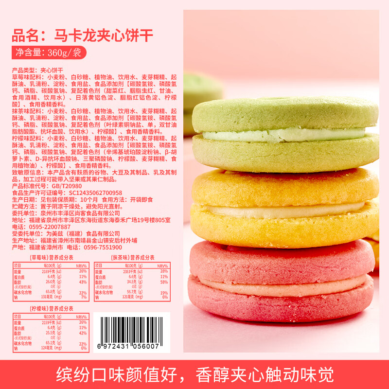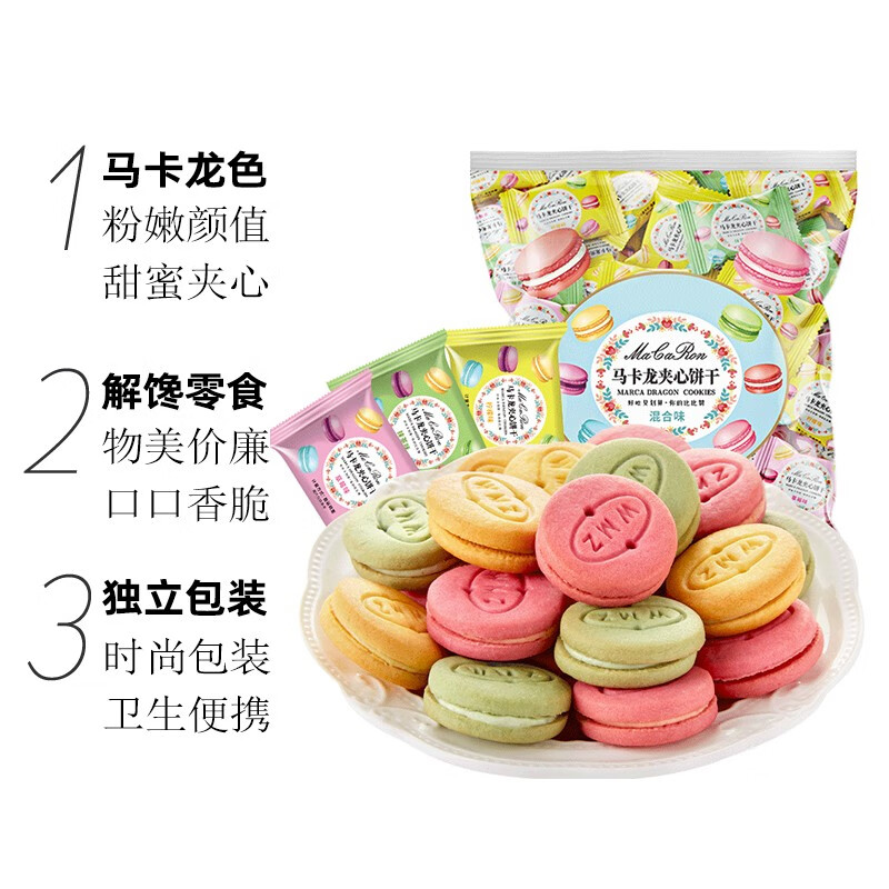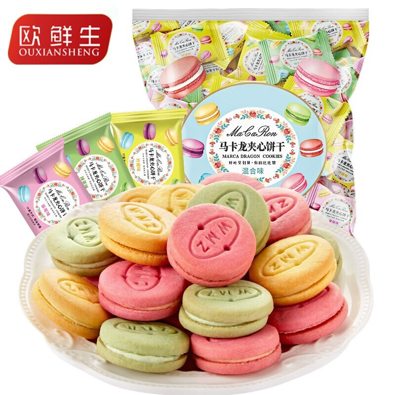 【特惠价¥15.9】欧鲜生马卡龙夹心饼干混合味:休闲零食新选择!