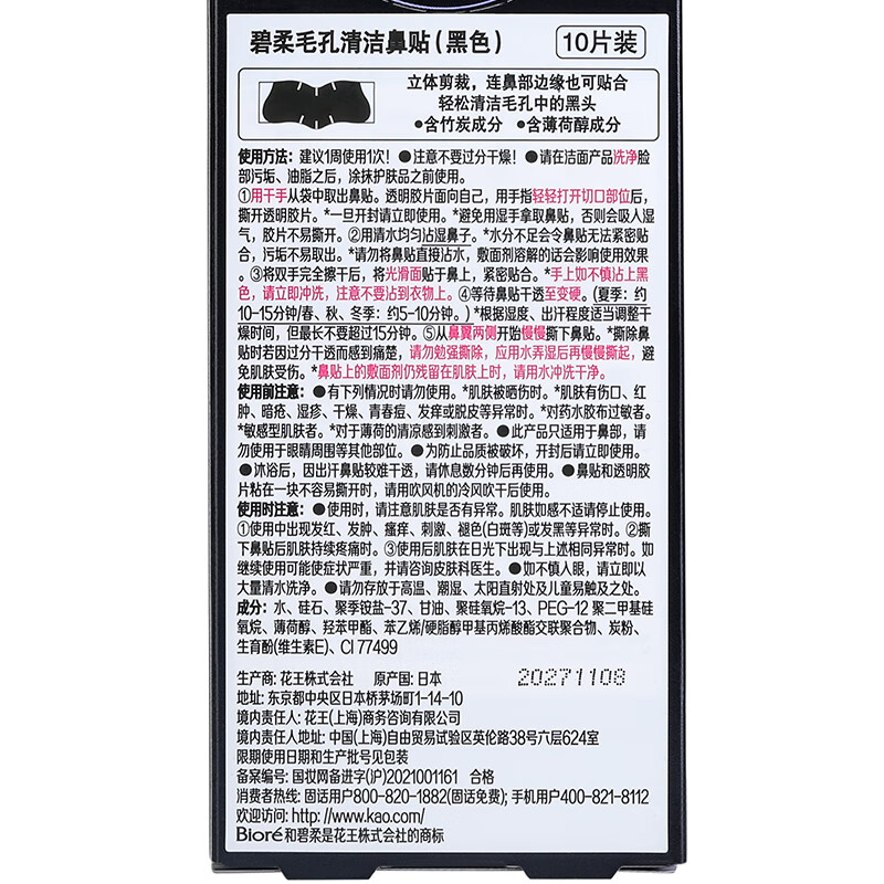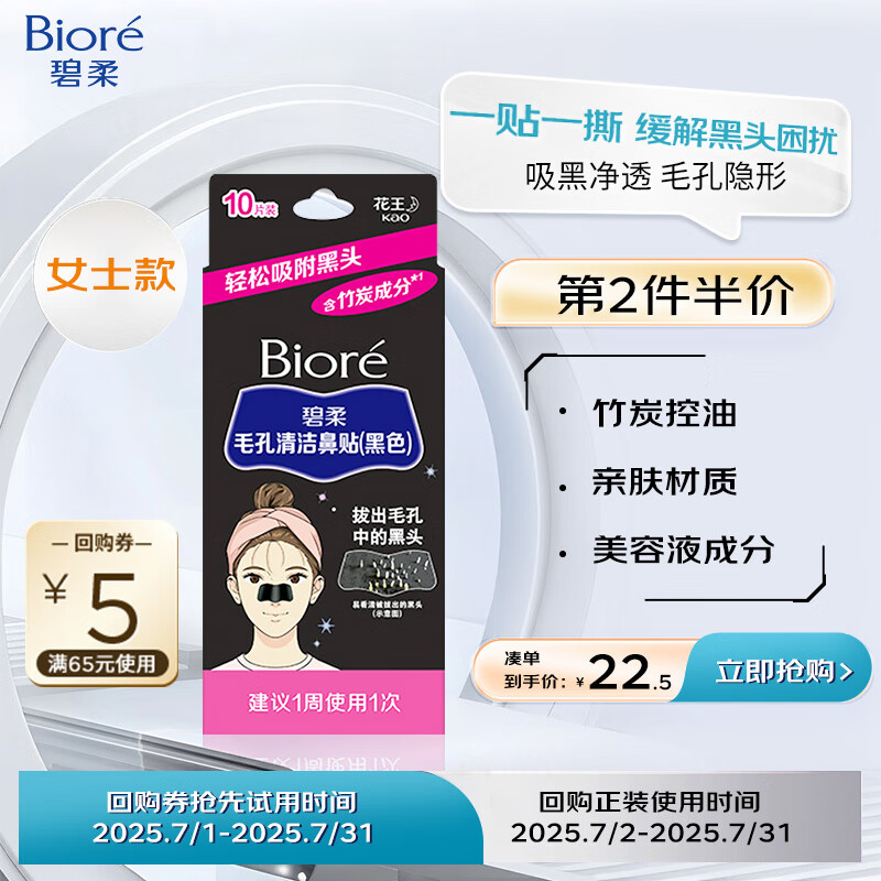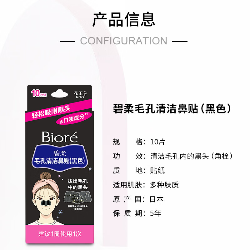 碧柔(Biore)女士竹炭清洁鼻贴:专业去除黑头粉刺,拥抱自信的你
