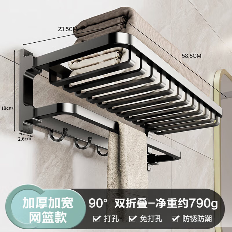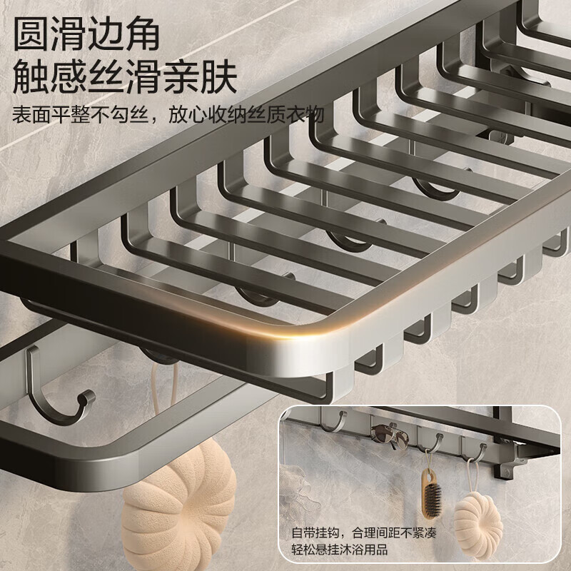 - 多样用途 – 不仅限于毛巾的摆放,这款置物架还能轻松挂上浴帽、洗发水等清洁用品。