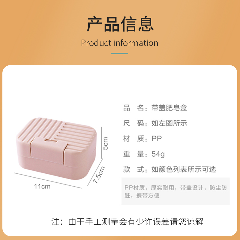 - 实用功能:带盖设计,防止肥皂蒸发,并能有效减少清洁时间。沥水功能方便存放,维持肥皂的新鲜度。