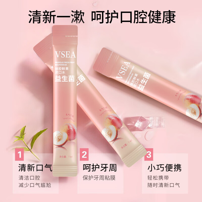 VSEA 果香漱口水一次性条装:便携式清新不打烊