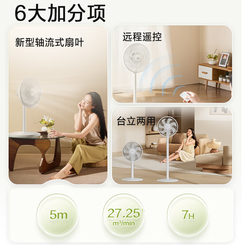- 摇头循环功能:方便多角度调节,适应不同的室内空间布局。