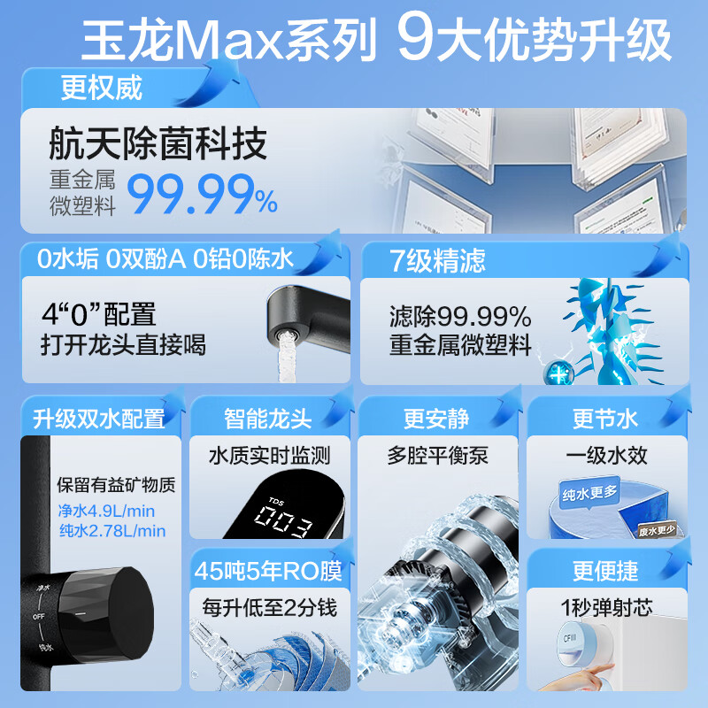• 升级玉龙Max1000G:配备先进RO技术,确保每一滴水的纯净与安全。