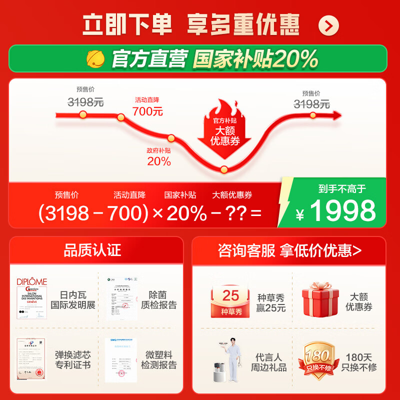 准备好迎接纯净生活的到来吗?本产品目前售价仅为3118元,国家补贴额度直达20%!