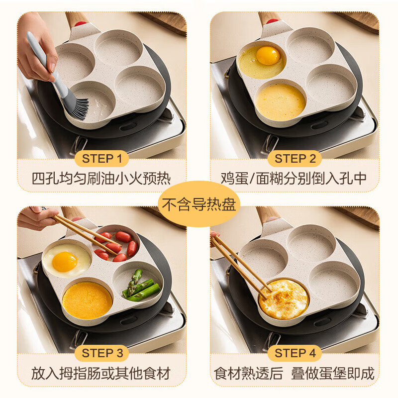 - 四孔设计:专门用来煎蛋,让您制作的早餐更加美味且方便。