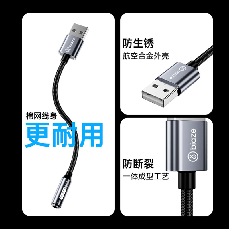 毕亚兹 【96KHZ/DAC芯片】USB转3.5mm外置声卡耳机麦克风二合一转换器音频转接头 限时优惠仅需42.9元
