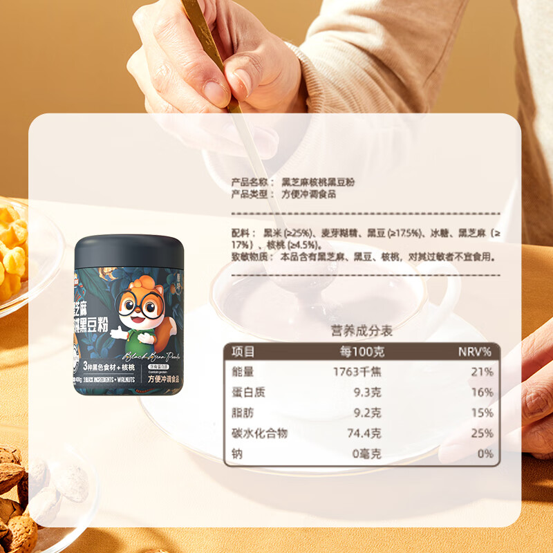 为何选择三只松鼠黑芝麻核桃黑豆粉?