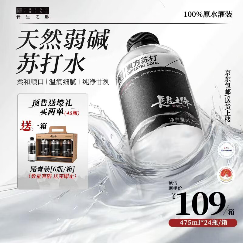 长生之脉 东方苏打的天然苏打水,以其无糖、零添加小分子特性闻名。这款475ml*24瓶整箱产品不仅保留了自然的清新,还通过严格的工艺流程,确保每一滴都是健康饮用。