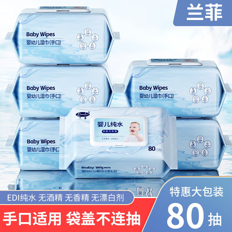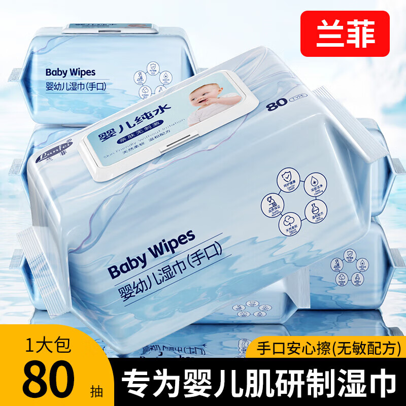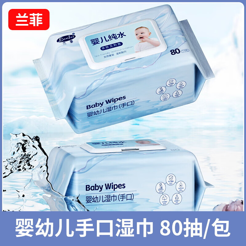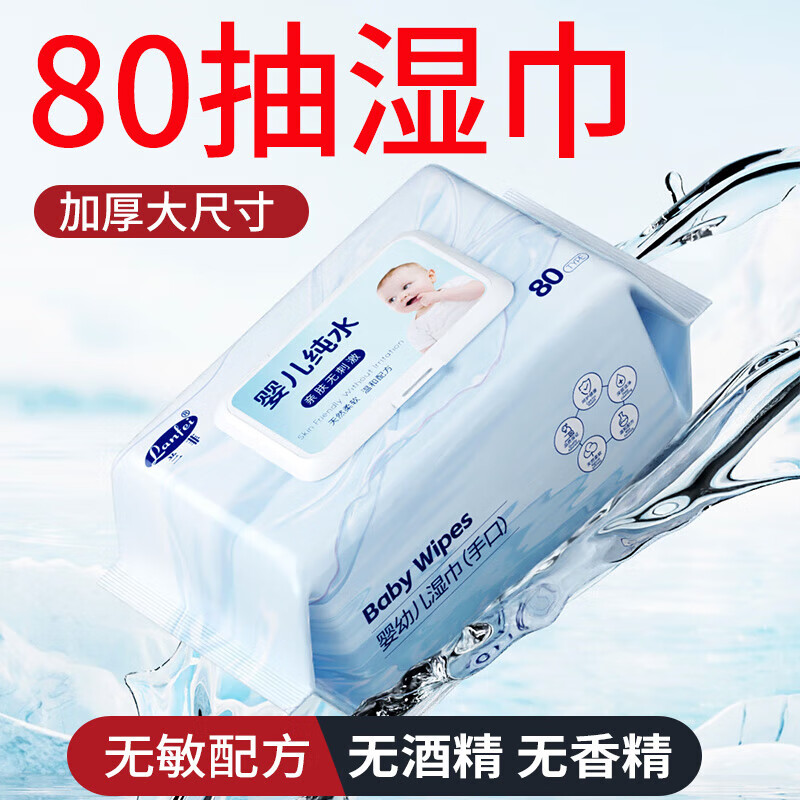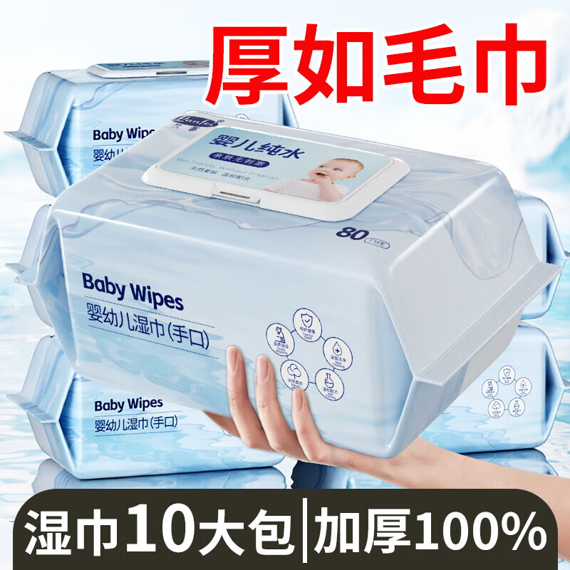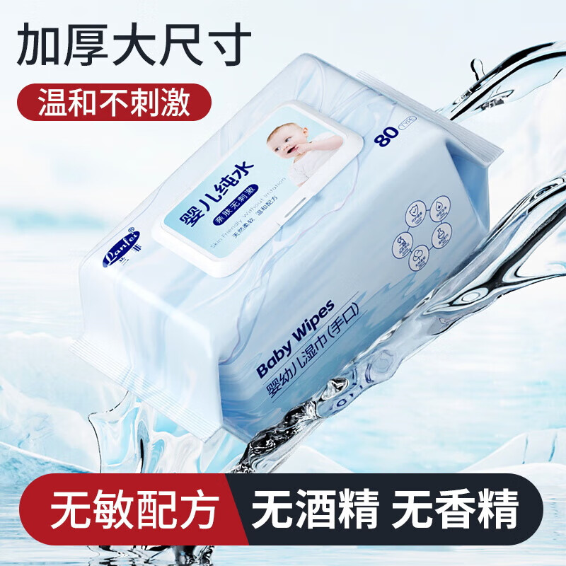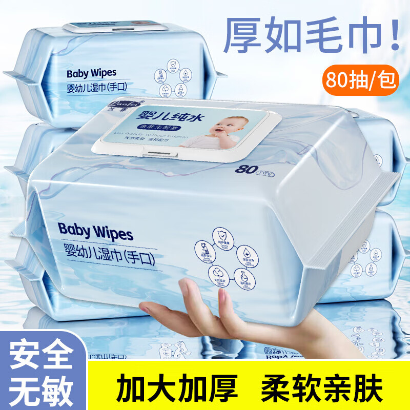 【金奖】手口湿巾婴儿80抽加厚大包超厚湿纸巾