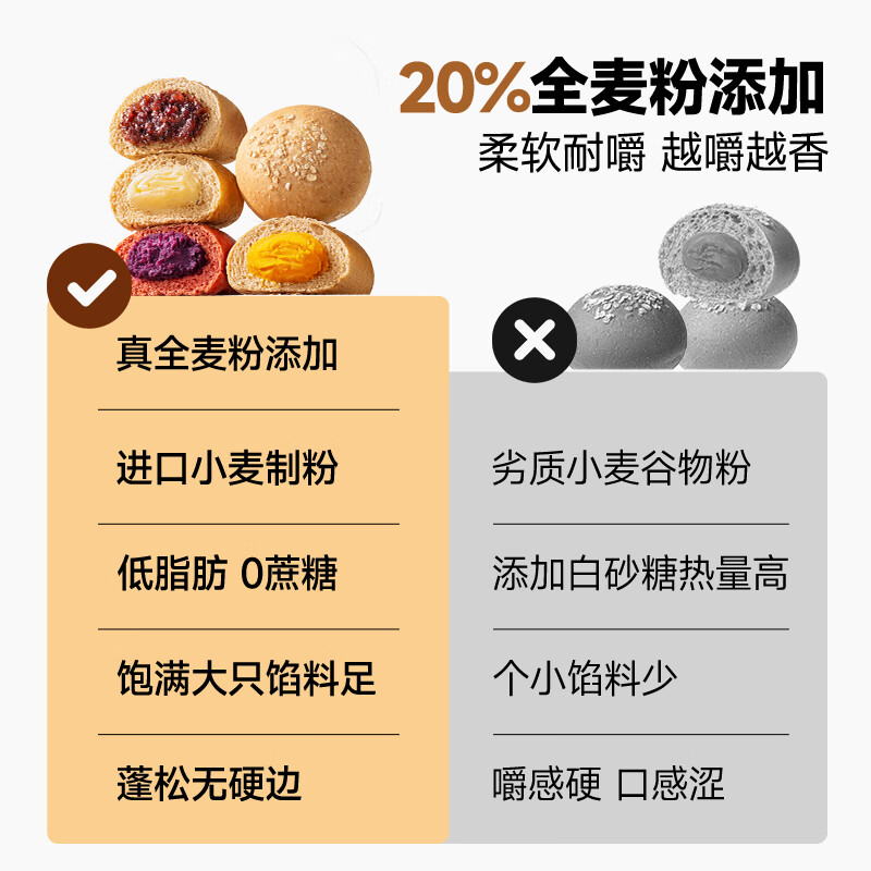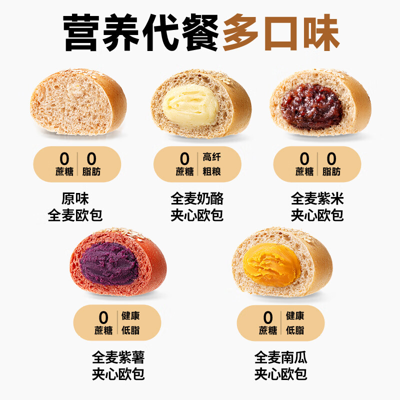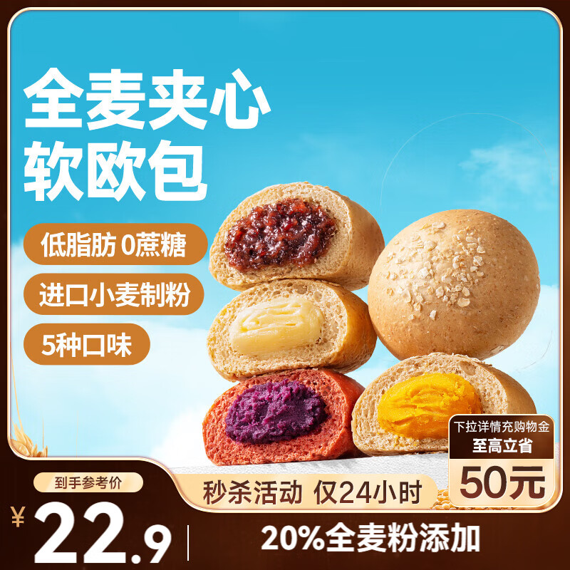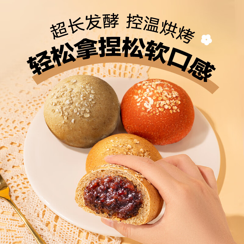 三只松鼠全麦面包1000g 混合口味原味紫米奶酪南瓜紫薯饱腹代餐欧包20个