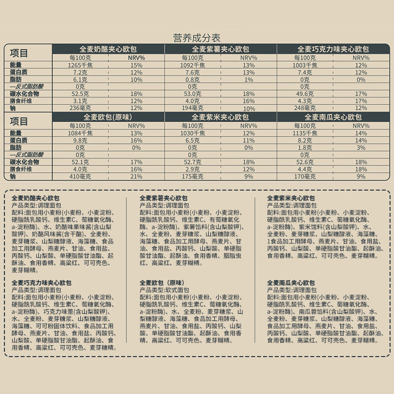 - 健康成分:使用全麦材料,富含纤维素和营养,助你保持健康。