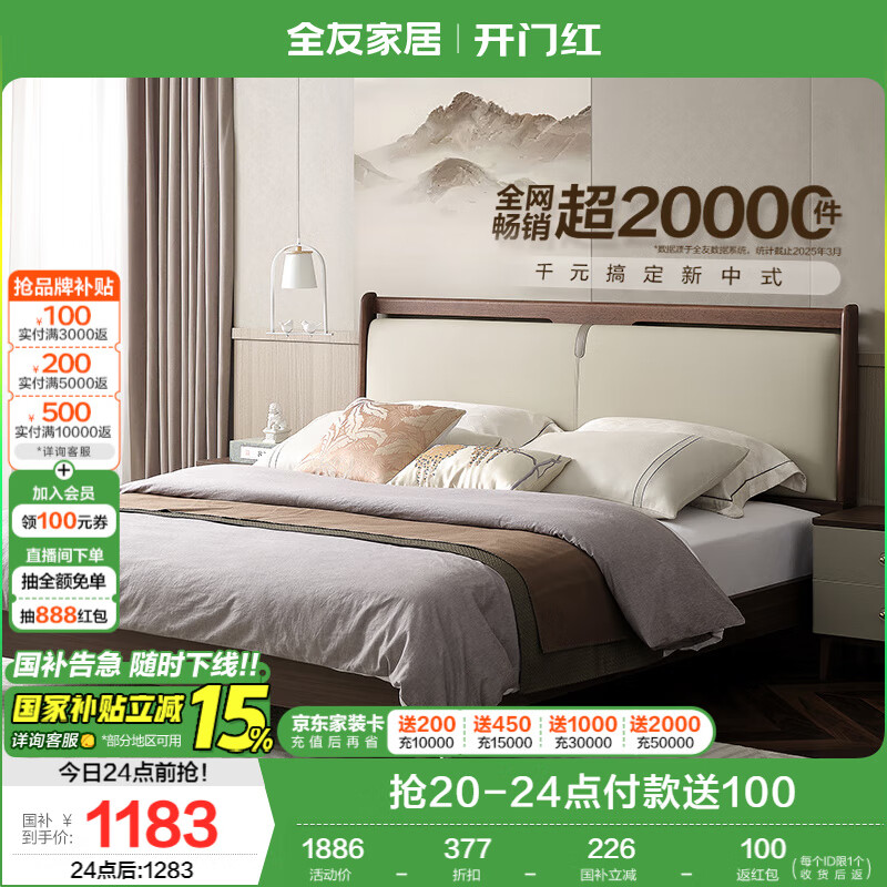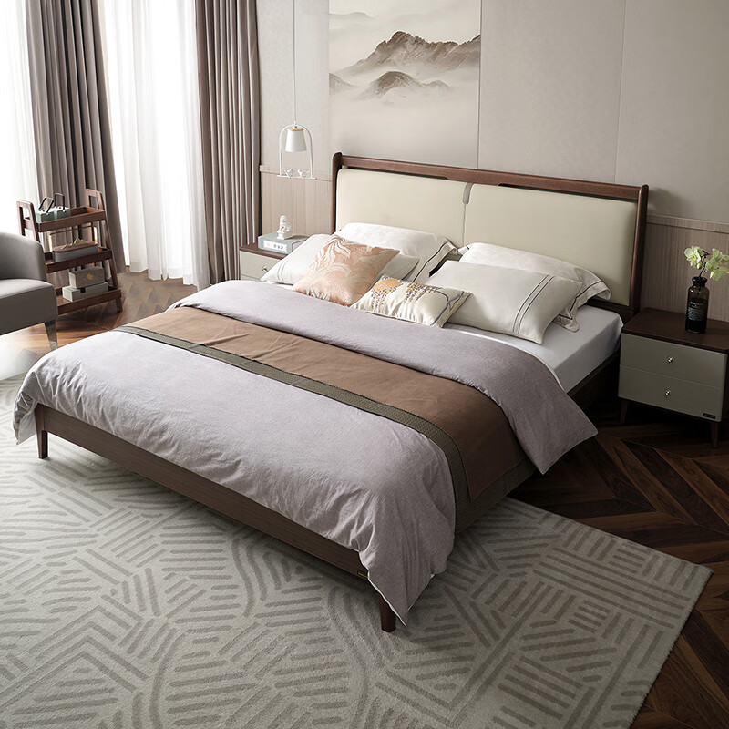 全友家居 新中式床以实木脚和软包工艺展示出轻奢感,现价仅需¥2351。拥有96%的好评率,并提供7天无理由退货政策。