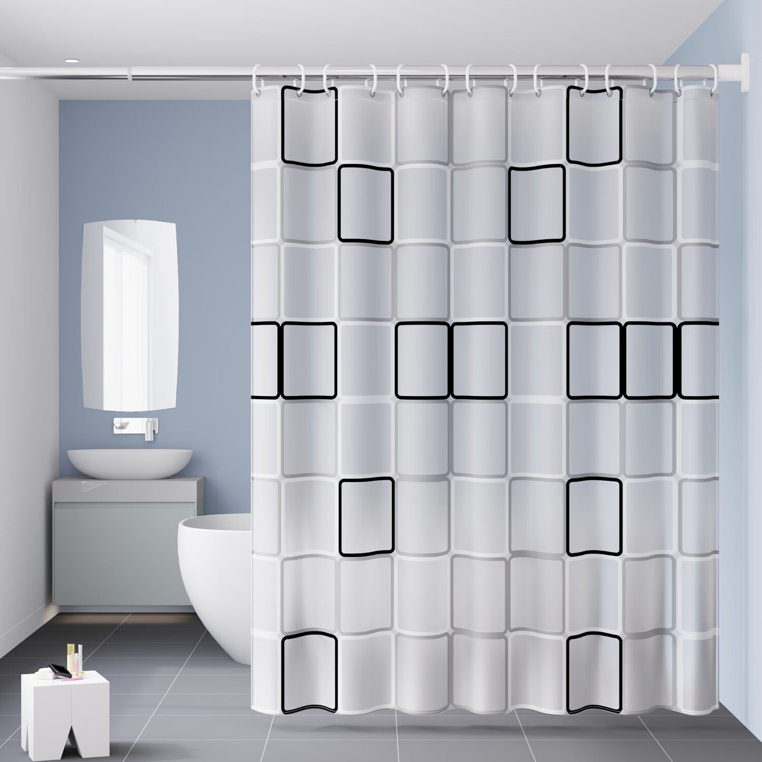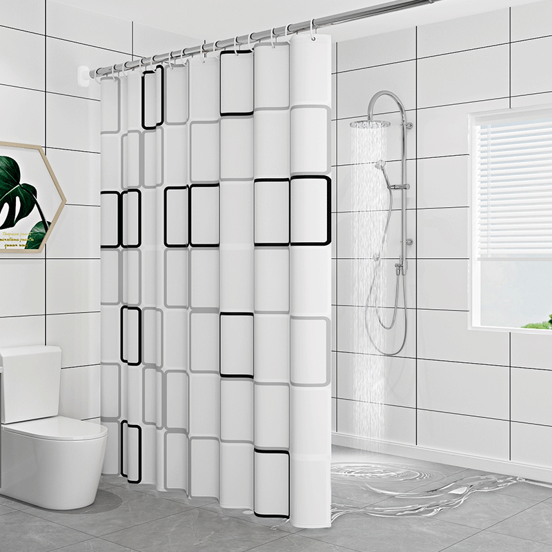 这款浴帘采用大方格图案设计,赋予您的卫生间现代感与优雅。无论是简单的白色墙面还是复杂的装修风格,它都能完美融入。