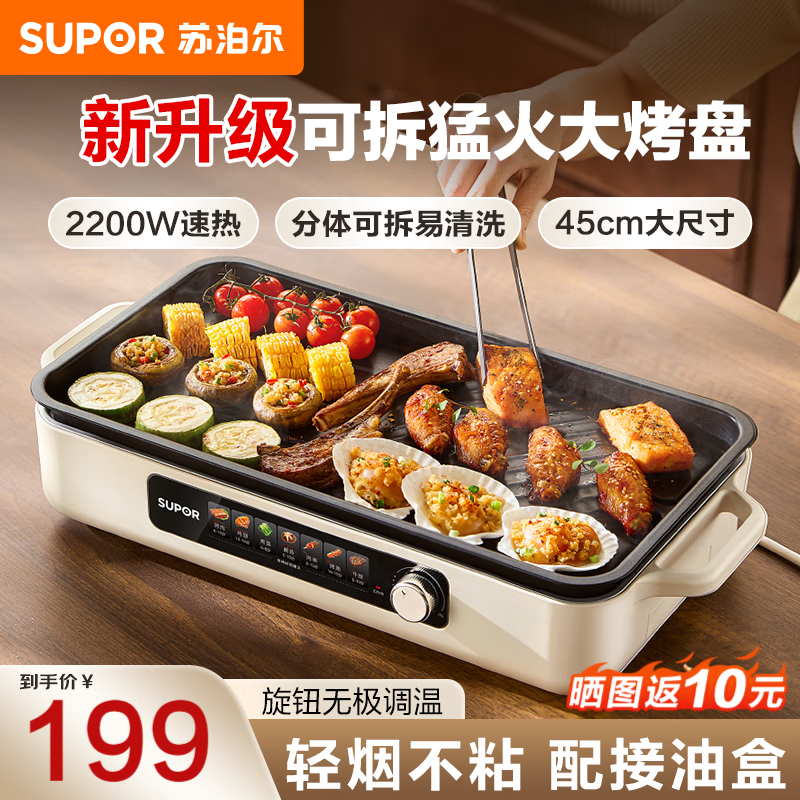 欢迎来到我们的产品介绍页面!今天,我们要分享一个让您在家就能享受美味烧烤体验的神器——苏泊尔烤肉锅电烤盘 2025爆款 GJ4525P812。这款分体可拆洗、多功能设计的电烧烤炉,为您的生活带来了无限可能!