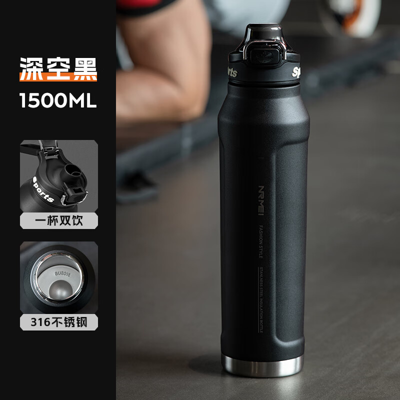 - 大容量设计:内置1.5L的容量,单次满足长时间的饮水需求。非常适合户外运动、旅行或工作。