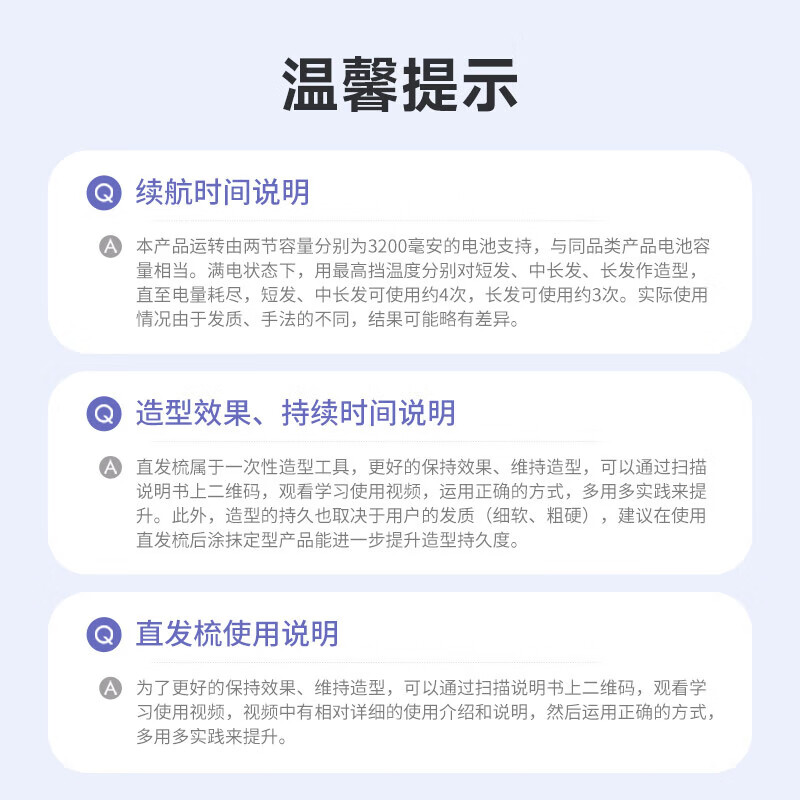 - 负离子技术:有效吸附静电,保持头发光泽柔顺,即使多次使用也不易损伤。