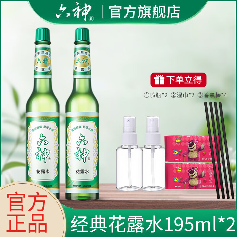 - 组合优选:195ml2的花露水与喷瓶2、湿巾2和香薰棒4组成,一款多功能清凉神器。