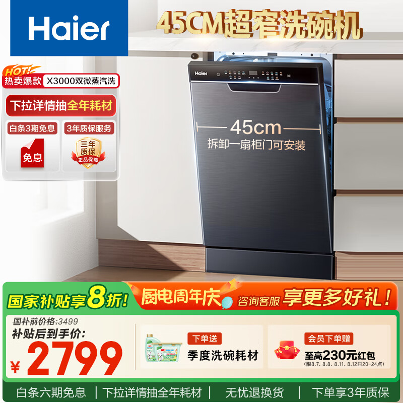 不要错过这次令人垂涎的购买机会,立刻访问产品详情,带上海尔【小蛮腰X3000】洗碗机,为您的家庭增添一份现代化与舒适!