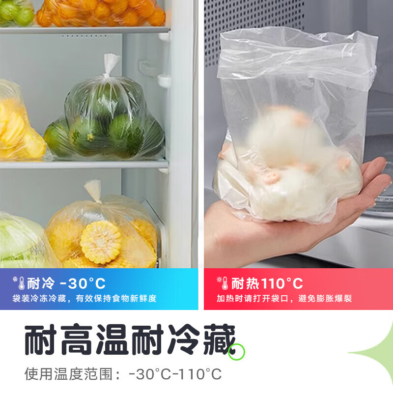 • 多功能保鲜:适合用于冷藏和常温食品存放,材质采用食品级PE塑料,安全环保无毒。