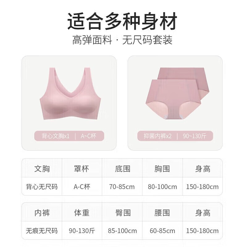 - 经典礼盒装:包含1款无痕胸罩+2条优雅内裤,满足你全面的日常需求。