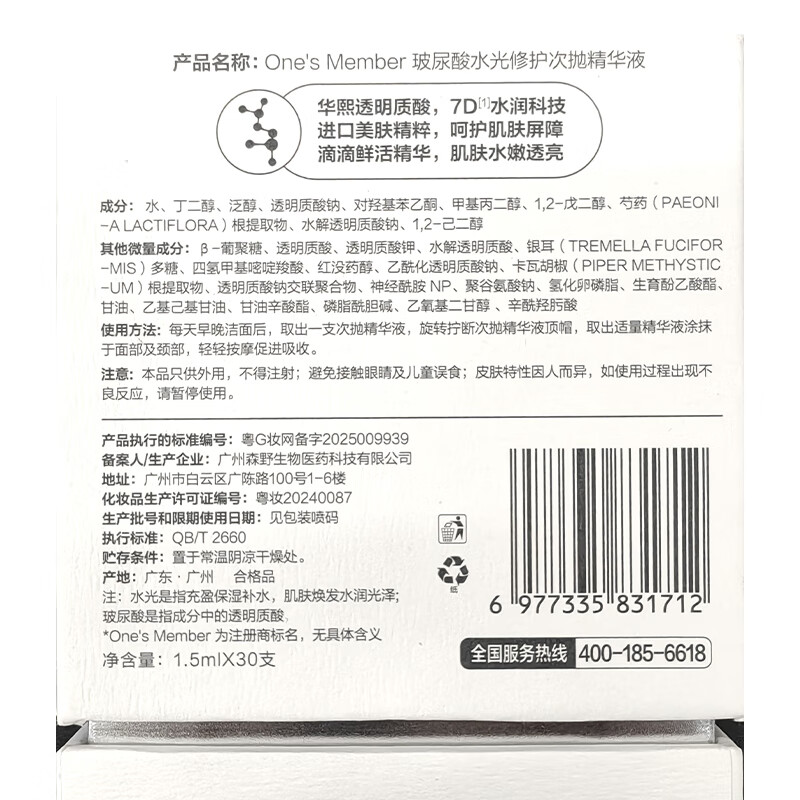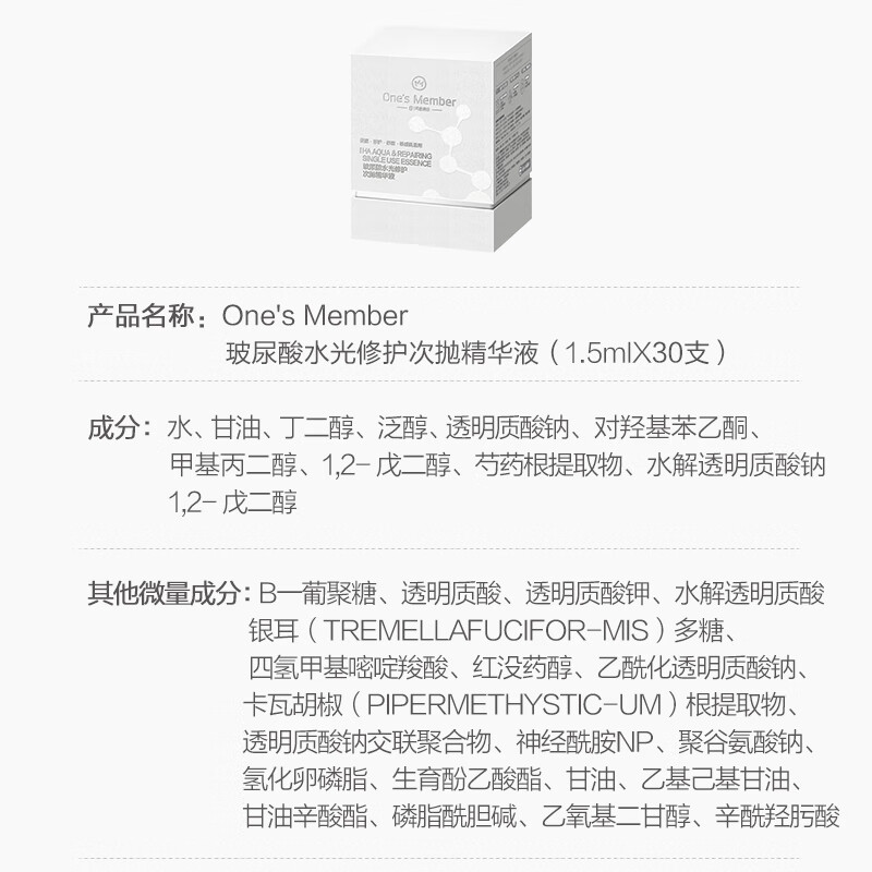 今天给大家推荐一个超值好物——1号会员店(One’s Member)玻尿酸修护次抛精华液补水舒缓护肤品礼物女,这款产品以其独特的效果和好评如潮吸引了无数追求完美肌肤的你我。现在正享有大幅度优惠,是时候入手一份爱了!