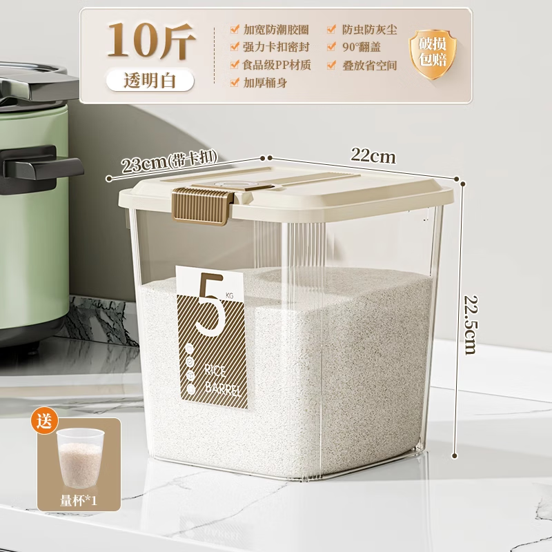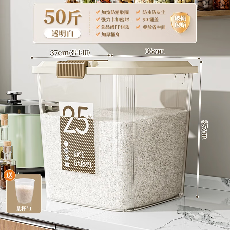- 容量:适合20斤/10kg的大米或其他谷物,足够家庭日常使用需求。