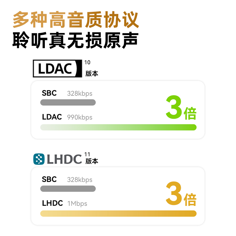• 高保真 HIFi 音质:支持 LDAC/LHDC 双版本,体验接近真音的高解析度音乐。