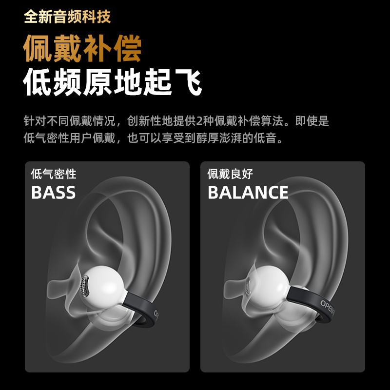 • 开放式设计:通透降噪,舒适贴合,不易打滑,贴合长时间佩戴需求。