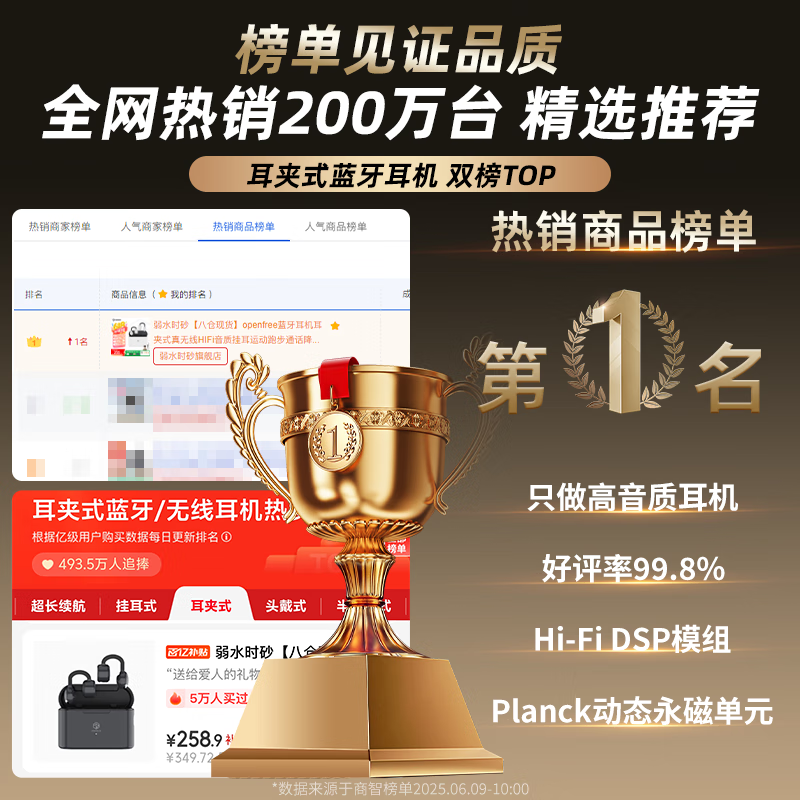 弱水时砂【八仓现货】openfree 蓝牙耳机耳夹式真无线 HIFi 音质挂耳运动跑步体验—现价 332.1 元