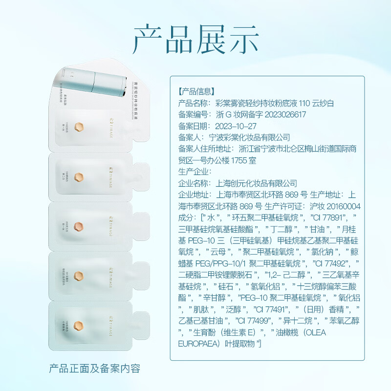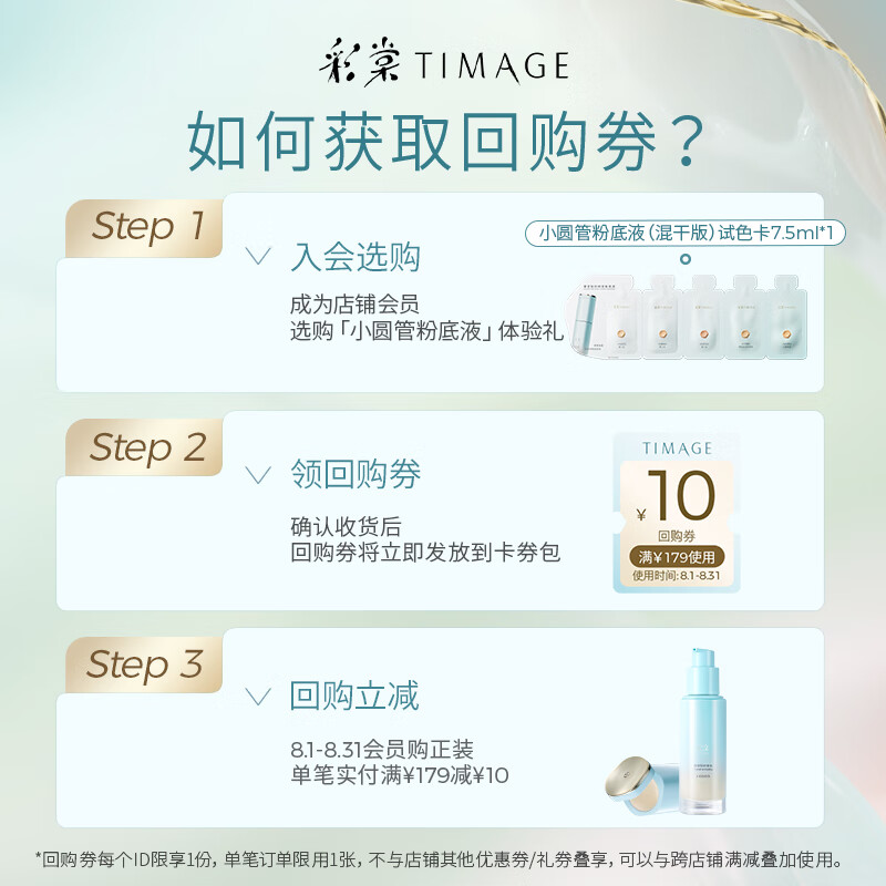 彩棠 TIMAGE 雾瓷轻纱持妆粉底液 1.5ml*5 仅售 47 元