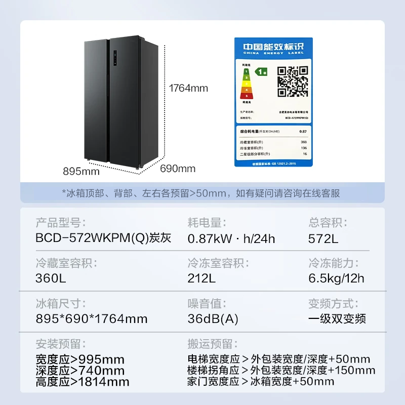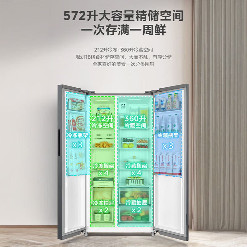 • 大容量572升:足够您的全家人使用,无论是食材还是冷藏品。