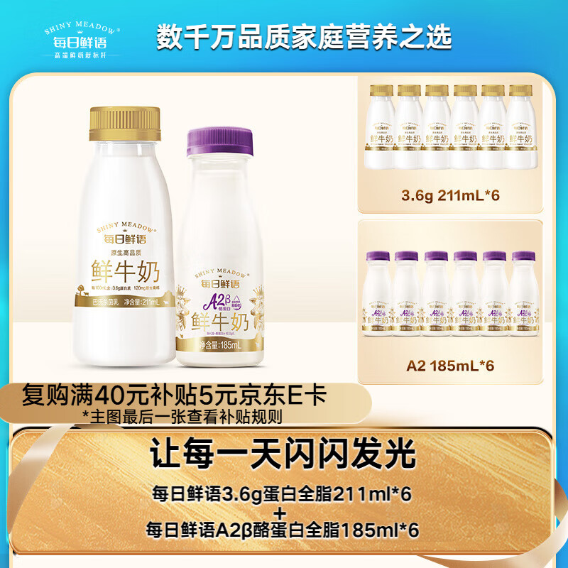 - 高蛋白全脂牛奶:每瓶 3.6g 蛋白,满足日常营养需求。