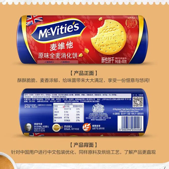 McVitie’s麦维他原味全麦消化饼干400g【临期清仓】 仅售 25.9 元