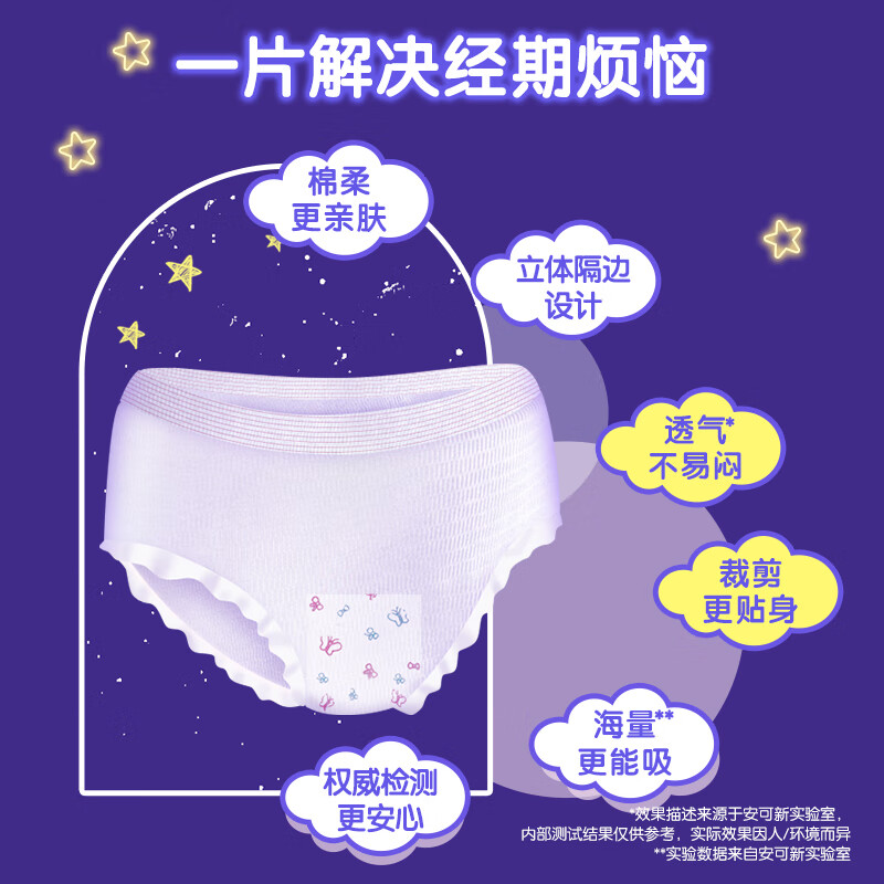 【限时特惠】安可新安心裤安睡裤型卫生巾 L码仅售62.8元,医护级舒适防漏