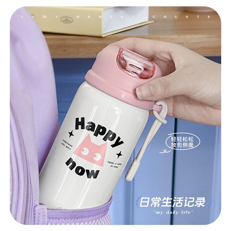 - 自带吸管设计:随时随地轻松饮水,省去杯盖不便的尴尬。