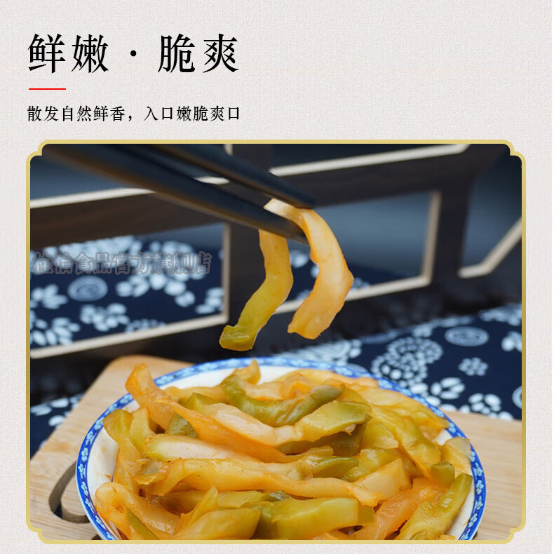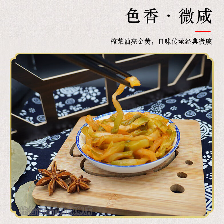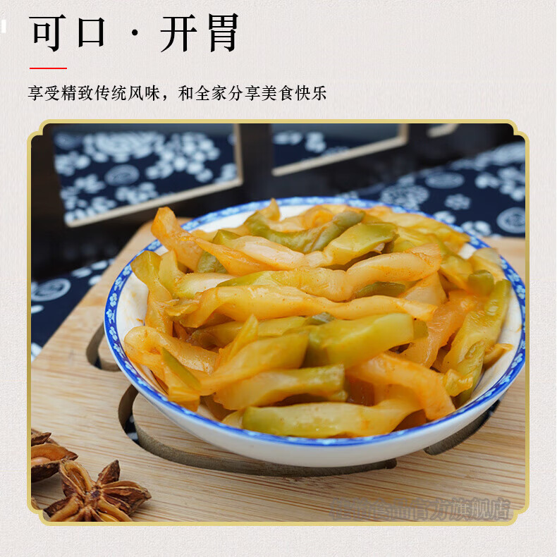 • 正宗味道:选用重庆涪陵本土榨菜原料,独特腌制工艺,保持鲜香与脆爽口感。